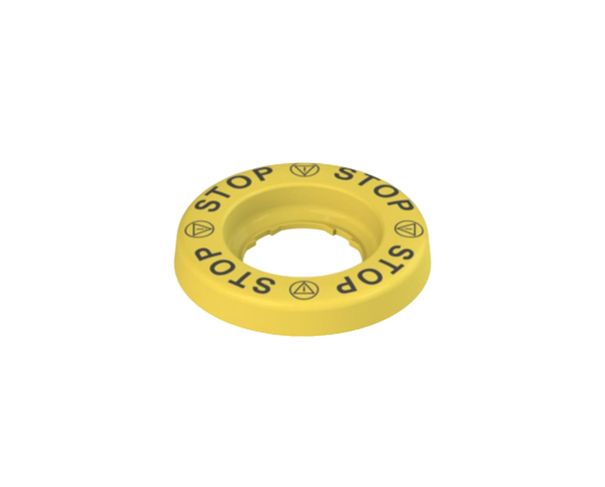 Disco luminoso amarillo de 60 mm de diámetro con inscripción, tipo de iluminación fija, alimentado a 24 Vac/dc, con grado de protección IP67.